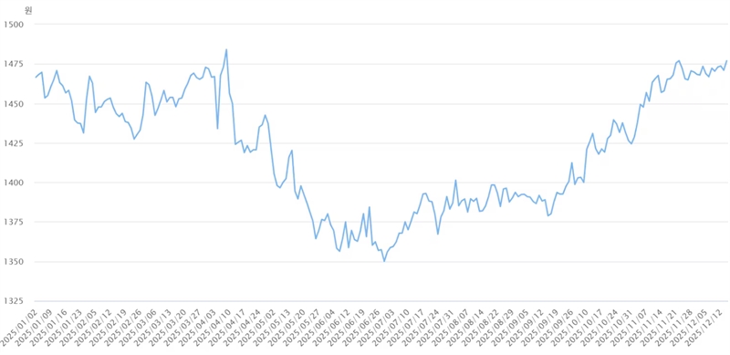 대 달러 환율 장중 한 때 1480원 돌파…종가 2.8원 오른 1479.8원
