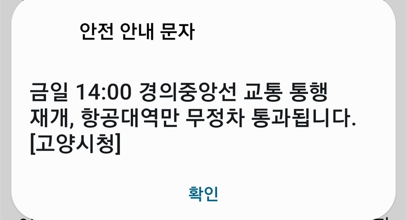 한국철도공사는 집중호우로 일산선 경기 고양시 지축역~대곡역 구간 열차 운행이 중단되고 있다고 밝혔다. 한편 경기 고양시는 13일 오전 집중호우로 운행이 중단됐던 경의중앙선 열차 운행을 오후 2시를 기해 재재했다고 밝혔다. 다만 항공대역은 무정차 통과 중이다. 1 0 사이렌스 임지연 bonnylim@naver.com 임지연의 기사 더보기 저작권자 ⓒ 사이렌스. 무단 전재 및 재배포 금지