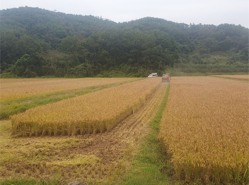 10월 초순 남부 지방인 경남 진주시의 한 들녘에서 콤바인이 벼 수확을 하고 있다. 추수 시기에 비가 자주 내리면서 추수를 제대로 하지 못하고 있다. 사이렌스 DB