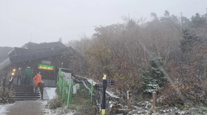 설악산국립공원 고지대에 올가을 들어 첫눈이 내렸다.