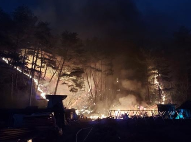 날이 어두워지면서 헬기 투입이 어려워 진화에 어려움을 겪고 있다.
