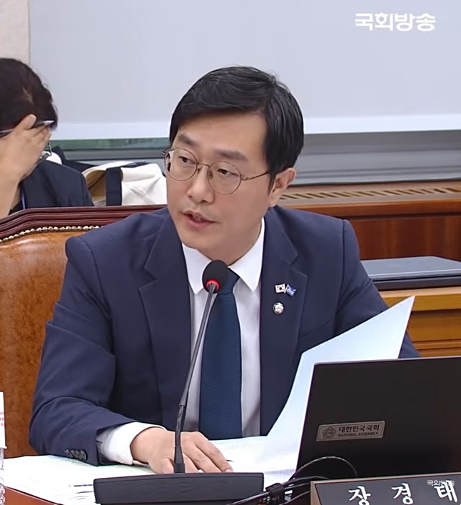 민주당 장경태 의원이 지난 10월 13일 국회 국정감사 법제사법위원회에서 질의를 하고 있다. 국회방송