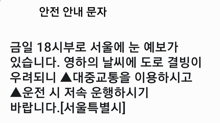 눈과 함께 강추위가 5일(금요일)까지 이어질 것으로 예상돼 출근길 빙판길과 도로 살얼음(블랙아이스)을 조심해야 한다.
