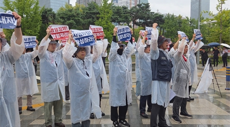 한국항공우주산업(KAI) 노동조합이 24일 오후 2시 가을비가 내리는 가운데 대주주인 한국수출입은행 서울 여의도 본사 앞에서 사장 인선을 촉구하는 집회를 열었다.노조는 "전임 강구영 사장이 퇴임한 지 100일이 되어 가지만 사장 인선은 여전히 제자리걸음"이라며 "대주주인 수출입은행의 조속한 결단을 촉구하기 위해 집회를 열