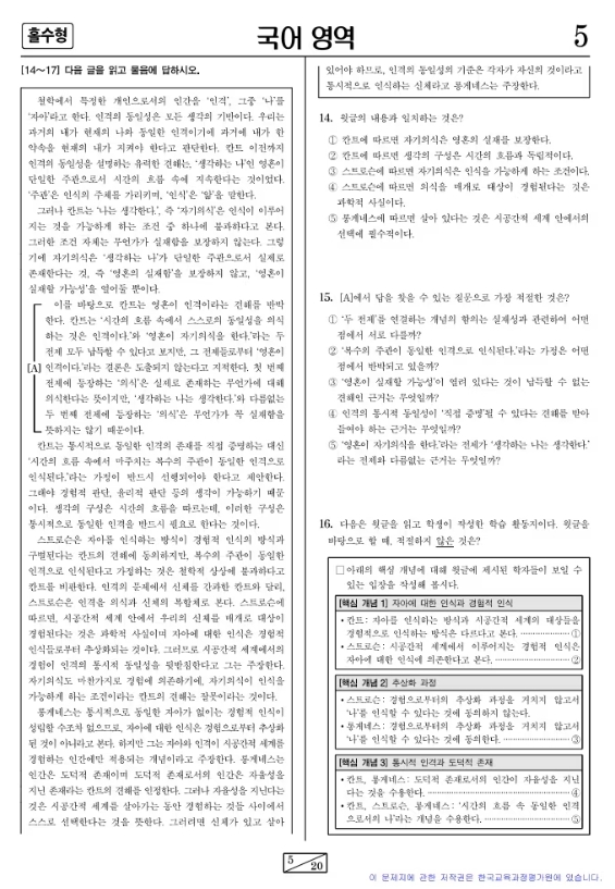 지난 13일 치러진 2026학년도 수능 국어 영역에 오류 문항이 있다는 주장이 나왔다.19일 교육계에 따르면 이충형 포항공대(포스텍) 인문사회학부(과학철학 전공) 교수는 한 수험생 커뮤니티 게시판에 ‘국어 17번 문제 제기’라는 제목의 글을 올려 “수능 국어 시험에 칸트 관련 문제가 나왔다고 하기에 풀어 보았는데 17번