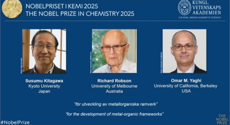 물리학·화학·생리의학 부문 등 올해 노벨상 자연과학 분야 수상자가 모두 발표됐다.스웨덴 왕립과학원 노벨위원회는 8일(현지 시각) "2025년 노벨 화학상 수상자로 일본 스스무 기타가와(74) 교토대 교수, 호주 멜버른대 교수인 리처드 롭슨(88·영국 출신), 미국 UC버클리대 교수인 오마르 M. 야기(60·요르단 출신)를