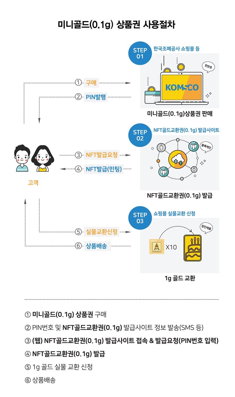 고객들은 공사 쇼핑몰에 들어가 상품권을 구입(비번 배정)한 뒤 이를 근거로 다시 NFT사이트에 접속, 요청을 하면 NFT교환권을 민팅(발급) 받을 수 있게 된다.