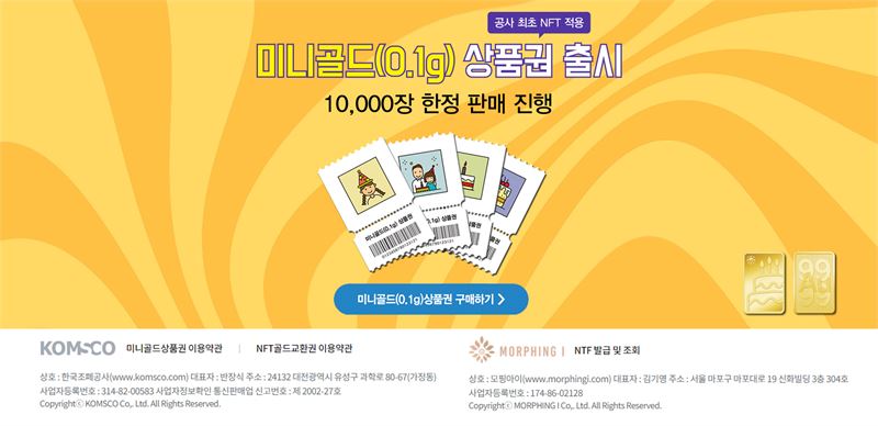 함께 작업한 ㈜모핑아이 김기영 대표는 "조폐공사와 진행한 실물 기반의 NFT 사업은 투기방지 및 거래 투명화에 기여하며, 소액으로 금 거래가 가능케 해 일반 고객들에게 NFT의 투명성 및 안전성을 알리는 계기가 될 것"이라고 말했다.