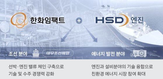 한화 관계자는 "HSD엔진의 제조 기술력을 대우조선해양과 결합해 친환경 엔진 선박 제조 등 고부가 가치 사업을 강화할 계획"이라며 "여러 계열사와 협업으로 시너지를 창출하는 등 미래 성장 동력과 핵심 역량 확보에 대한 투자를 지속하겠다"고 밝혔다.
