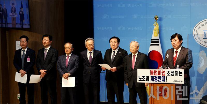 이들은 "개정안이 사용자와 노동자의 개념을 무분별하게 확대, 근로계약의 당사자가 아닌 기업까지 쟁의대상으로 끌어들여 기업경쟁력과 국가경쟁력을 심각하게 저하시킬것"이라고 주장했다.
