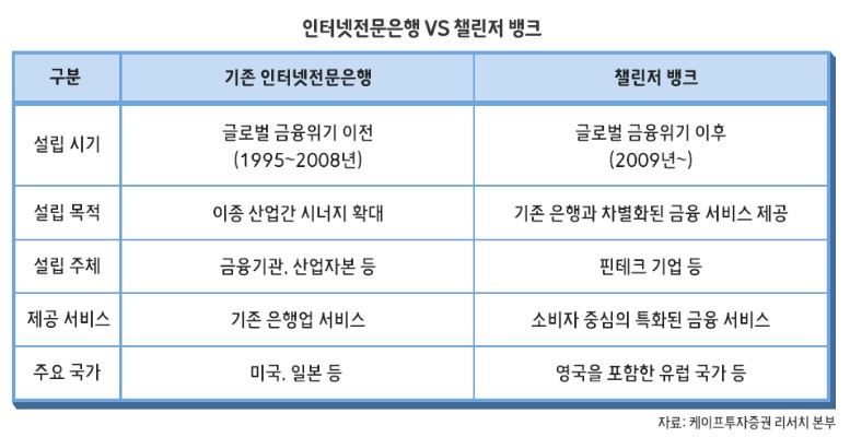 인터넷 은행들은 사실 챌린저 뱅크와 상당히 유사한 특성을 가지고 있다. 일부의 영역에서는 경쟁력을 확보할 수 있었지만 거대 은행과 동등한 위치에서 경쟁할 가능성은 상당히 제한적이었다.