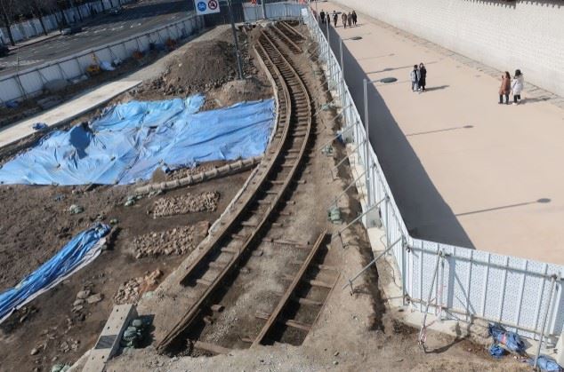 이 철로는 1966년 세종로 지하도가 생기면서 땅속에 묻혔고, 지난해 9월부터 매장문화재 발굴 조사와 월대 복원 등을 진행하는 과정에서 57년 만에 발굴됐다.