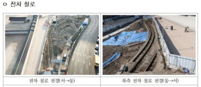 철로 하부에는 납작한 돌 '갑석'이 사용됐고 상부는 콘크리트로 기초를 만들었다. 또 침목은 70~80㎝ 간격을 두고 설치해 그 위로 전차가 이동하도록 했다.