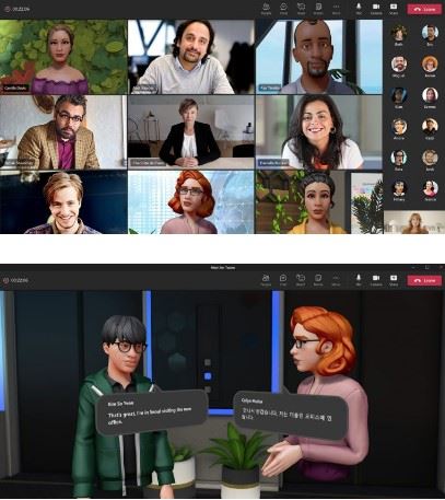 새로운 의사소통 방식을 제시한 팀즈용 메시(Mesh for Microsoft Teams). 팀즈용 메시를 통해 특별한 장비 없이 개인화된 아바타로 현실감 있는 회의를 진행할 수 있다. MS 제공