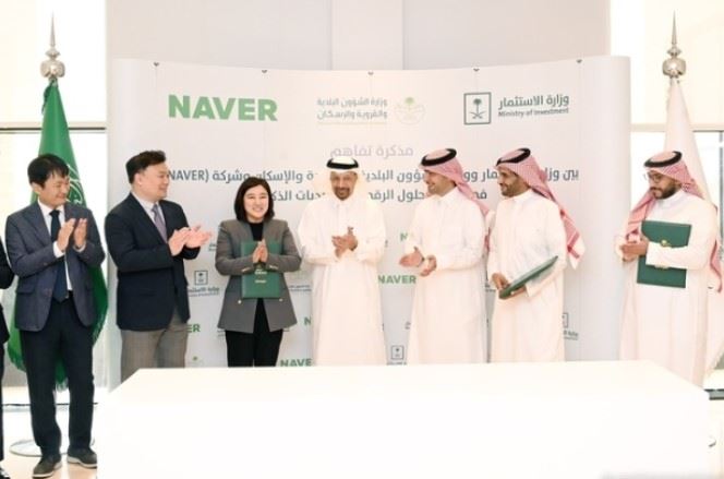 네이버, 네이버랩스, 네이버클라우드와 사우디아라비아 자치행정주택부 및 투자부는 30일 사우디아라비아 리야드에 위치한 자치행정주택부 청사에서 협약식을 갖고 현지 정부가 추진하는 국가 단위 디지털전환 프로젝트에 포괄적으로 협력하기로 했다.