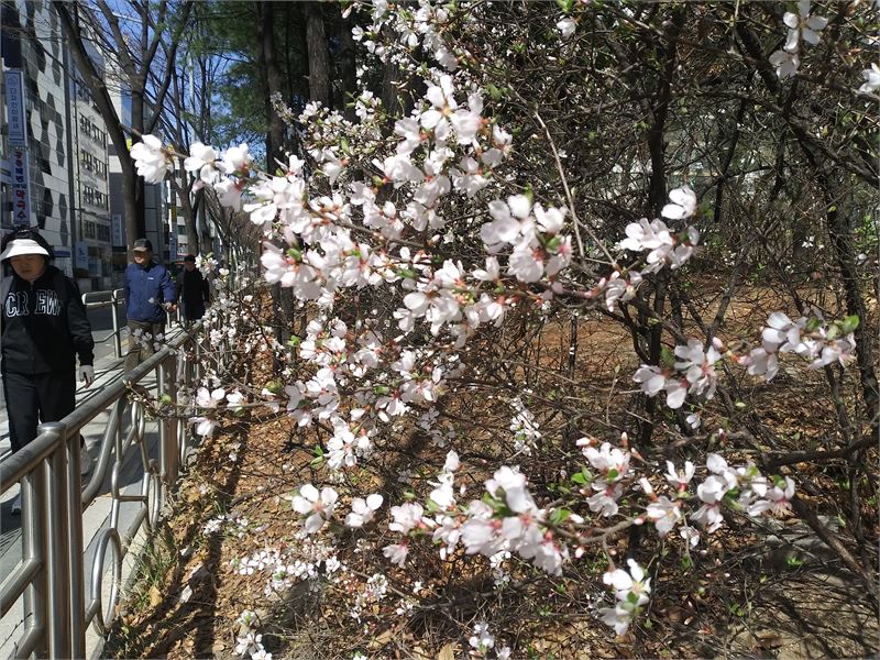 지나는 주민들의 관심에 앵두꽃은 관찰 이틀만에 서둘러 만개를 했다.