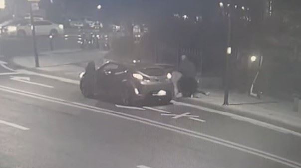 납치 용의자들이 지난달 29일 오후 11시 48분쯤 서울 역삼동의 한 아파트 단지 입구에서 피해여성을 차량에 태우며 납치하고 있다. 독자 제공