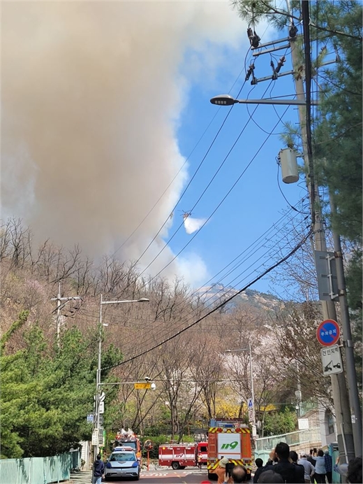 일요일인 2일 낮 서울 종로구 인왕산에서 산불이 발생해 소방당국이 긴급 진화에 나섰다.