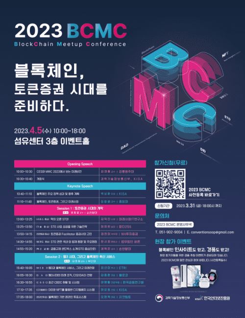 한국인터넷진흥원(KISA)은 과학기술정보통신부와 함께 토큰증권 시대에서의 블록체인 역할을 조망하고, 웹3 시대에서의 블록체인 혁신서비스를 살펴보는 '2023 블록체인 밋업 컨퍼런스'를 5일 강남 섬유센터에서 개최한다.