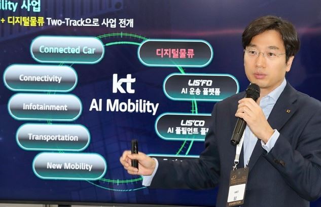 최강림 KT AI모빌리티사업단장이 지난 19일 서울 강남구 코엑스에서 열린 기자 스터디에서 5G 요금제 출시 등 커넥티드카 사업 계획을 설명하고 있다. KT 제공