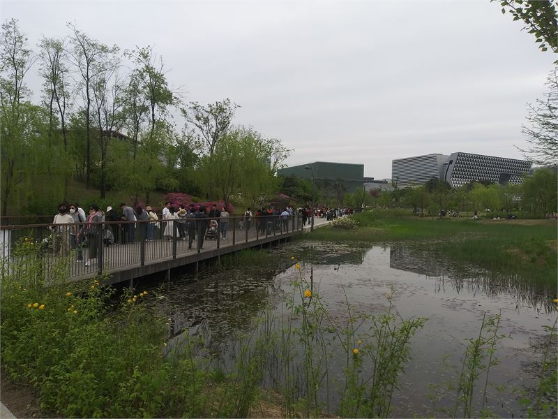 서울식물원 입구쪽 메인 길을 시민들이 꽉 채우고 있다.
