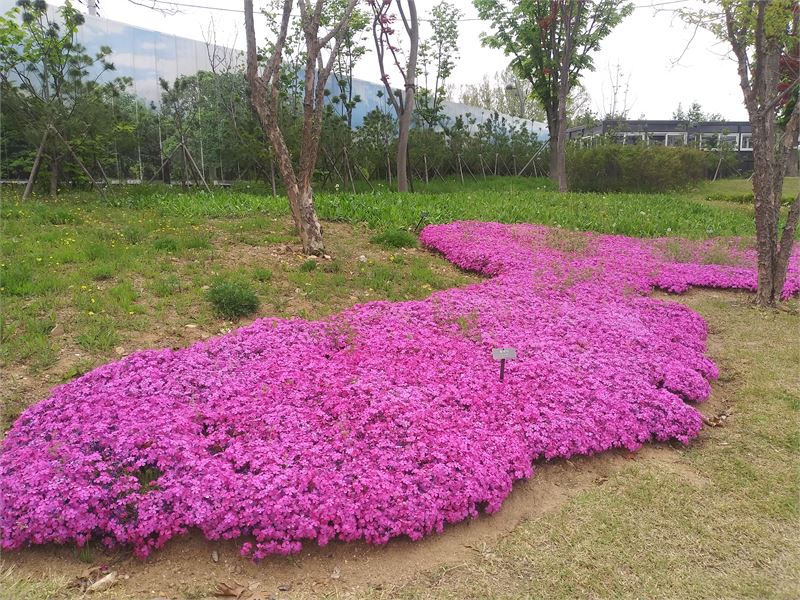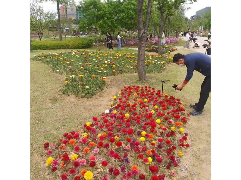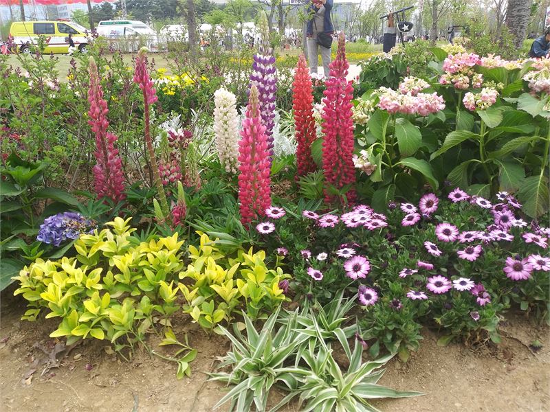화사한 꽃잔디 화단. 한반도 지형을 본 뜬 듯하다.