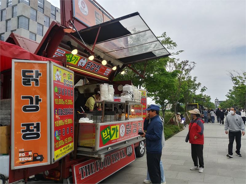 금강산도 식후경. 산책 나온 시민들이 출출한 지 발길을 멈추었다.