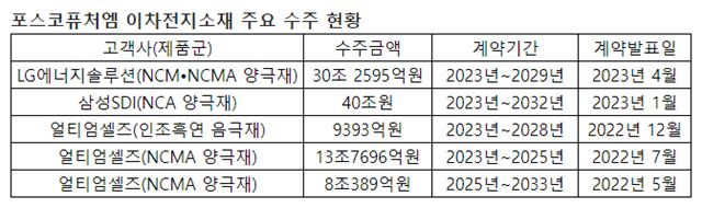 포스코퓨처엠 이차전지소재 주요 수주 현황 표. 포스코퓨처엠 제공