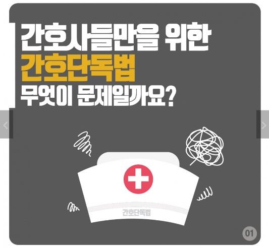 이 법은 간호사 직역을 의료법에서 떼내 법적 지위를 독자 보장하는 것을 골자로 한다. 간호사와 전문간호사, 간호조무사의 업무 범위를 정하고 간호사 처우 개선 등의 내용을 담고 있다. 의사와 간호조무사 등 다른 의료 직군은 형평성을 이유로 반대하고 있다.