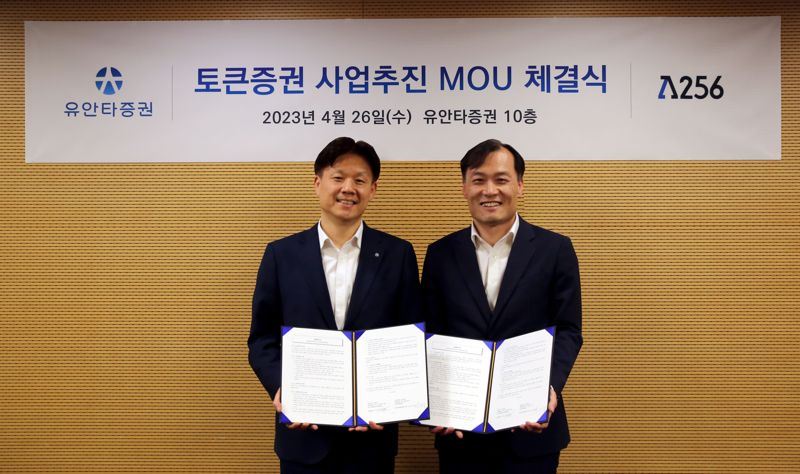유안타증권은 지난 26일 서울 을지로 본사에서 '람다256'과 토큰증권 유통(STO) 사업 추진을 위한 양해각서를 체결했다. 유안타증권 제공