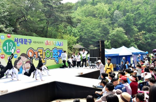코로나19가 크게 유행하지 않던 2019년 5월 5일 홍제천 폭포마당에서 열린 ‘제13회 서대문구 어린이축제’ 모습. 서대문구 제공