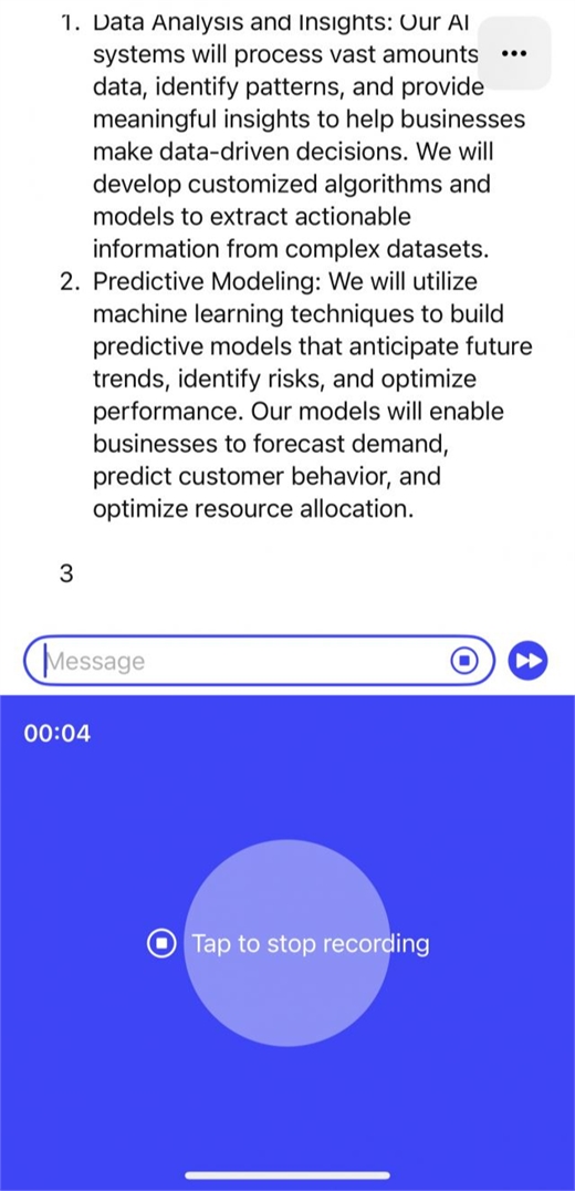 챗GPT의 모바일용 앱. 챗GPT 앱에서 음성으로 명령(프롬프트)을 입력할 수 있다. 챗GPT 앱 캡처
