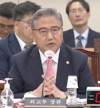 박진 외교부 장관 외교통일위 전체회의에서 답변을 하고 있다. 국회방송 캡처