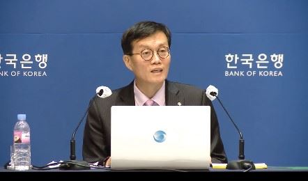 이창용 한국은행 총재가 기자들의 질문에 답하고 있다.