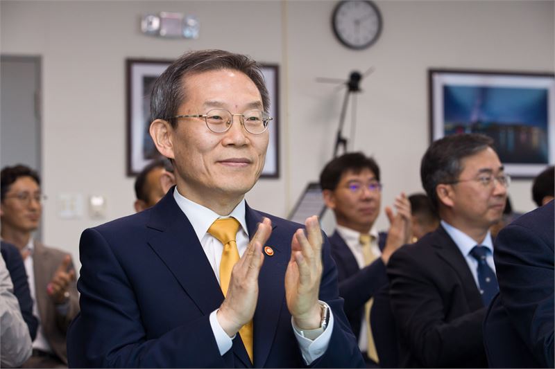 이종호 과학기술정보통신부 장관 등이 누리호 발사 성공에 박수를 치며 축하하고 있다. 과기정통부 제공