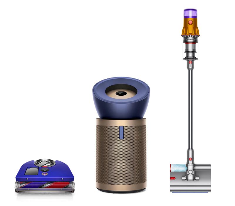다이슨이 신제품으로 내놓은 D자형 로봇청소기(맨 왼쪽), 강력 분사 공기청정기(가운데), 물청소도 가능한 무선청소기.