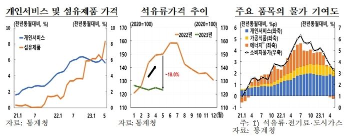 석유류는 1년 전보다 18.0% 내리면서 지난 2020년 5월(18.7% 하락) 이후 3년 만에 최대 감소폭을 나타냈다. 이에 따라 전체 물가상승률에 대한 석유류의 영향률은 -0.99%포인트로 전달보다 줄면서 인플레이션 진정세에 큰 역할을 했다.