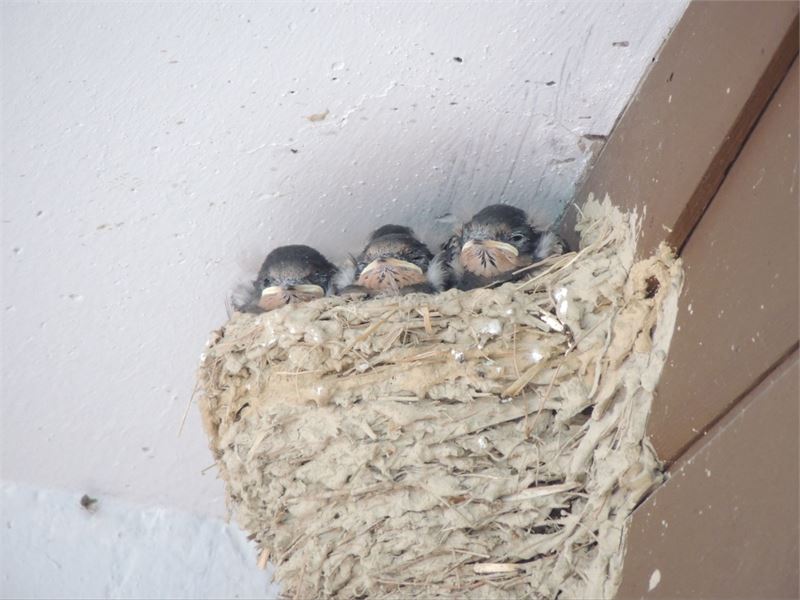 배고픈 새끼제비 3마리가 먹이를 물고 올 어미제비를 기다리고 있다.