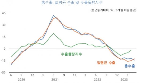 올해 6월 총수출, 일평균 수출 및 수출물량지수. 이상 한국개발연구원(KDI) 제공