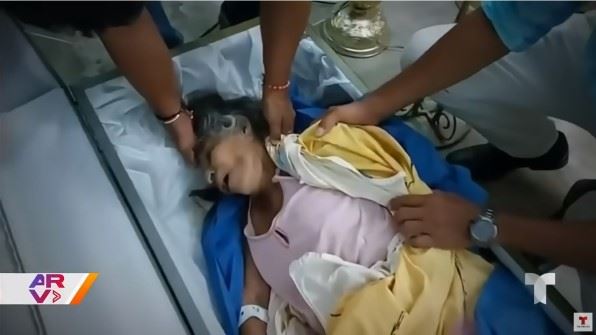 사망 판정 후 관 속에서 눈을 뜨고 숨을 내쉬고 있는 에콰도르 벨라 몬토야 할머니의 모습. 'Al Rojo Vivo' 캡처