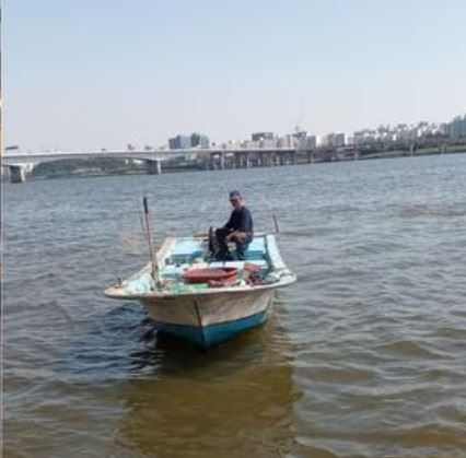 고양시 행주어촌계 소속 어민 김홍석 씨가 한강에서 조업을 하고 있다. 이상 행주어촌계 제공