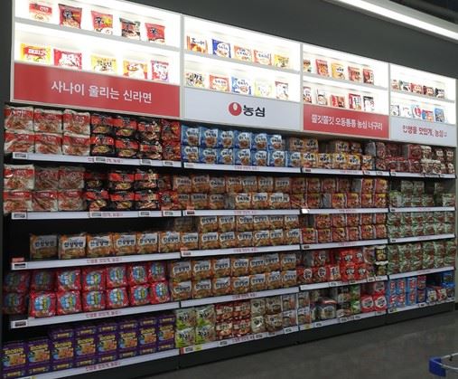 서울 강서구 홈플러스 본사 매장의 라면 판매대 모습. 정기홍 기자