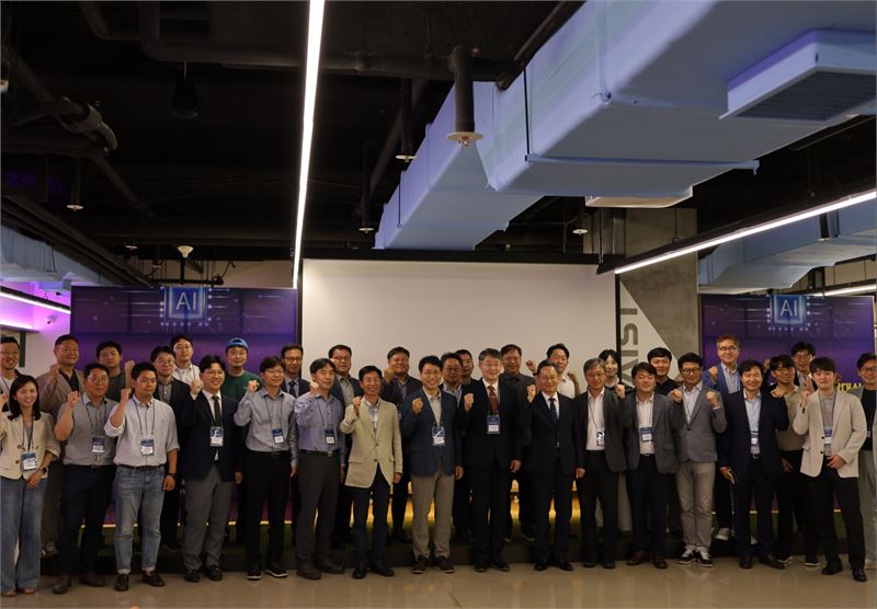 6월 28일 경기 화성시 KAIST-동탄 사이언스 허브에서 열린 한국생성AI파운데이션(KGAF) 발대식 겸 포럼 행사에서 참석자들이 힘찬 출발을 다짐하며 기념 촬영을 하고 있다.