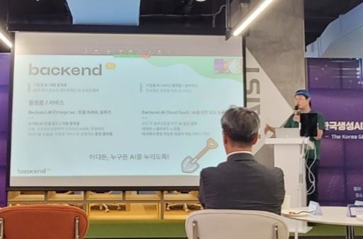 업력 9년차로 삼성, LG, 한국은행 등을 주요 고객으로 두고 있다는 그는 자사의 인공지능 연구개발 플랫폼 '백엔드에이아이(Backend. AI)'를 통해 누구나 시간과 비용의 제약 없이 인공지능을 만들고 효과적으로 관리 또는 서비스할 수 있다고 밝혀 큰 박수를 받았다.