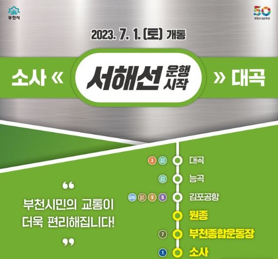 30일 경기 부천시 등에 따르면 오는 7월 1일 서해선 복선전철 연장 구간인 '소사대곡선' 운행을 시작한다.