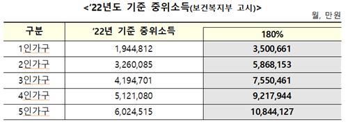 가구소득의 경우 신청자 본인을 포함한 가구원(배우자, 부모, 자녀, 미성년 형제·자매) 소득의 합계가 지난해 기준 중위소득의 180% 이하여야 한다.