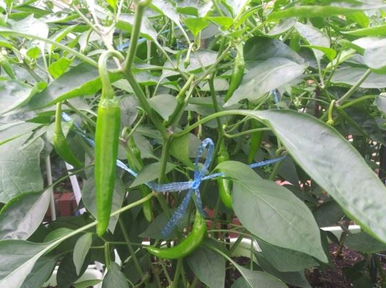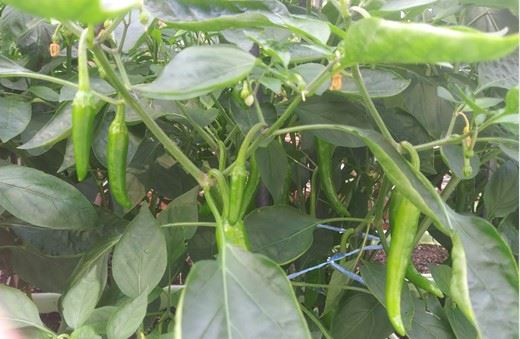 상당히 자란 고추들. 밥상에 오를만큼 약이 오르려면 좀 더 커야 한다.