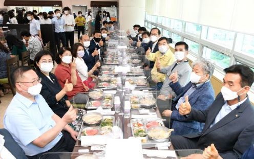 경기도의 한 지자체에서 복날을 맞아 삼계탕 점심 회식을 하고 있다. 광주시 제공