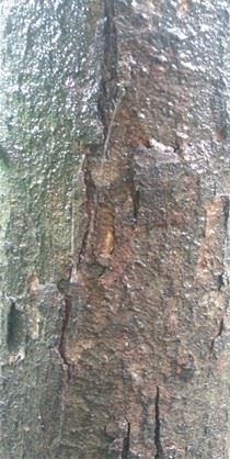 폭우가 쏟아지자 나무에 물줄기가 생겨 실폭포처럼 떨어지고 있다.