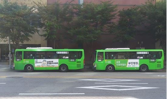 서울 강서구의 한 백화점 앞 정류장에서 마을 버스가 정차해 있다. 정기홍 기자